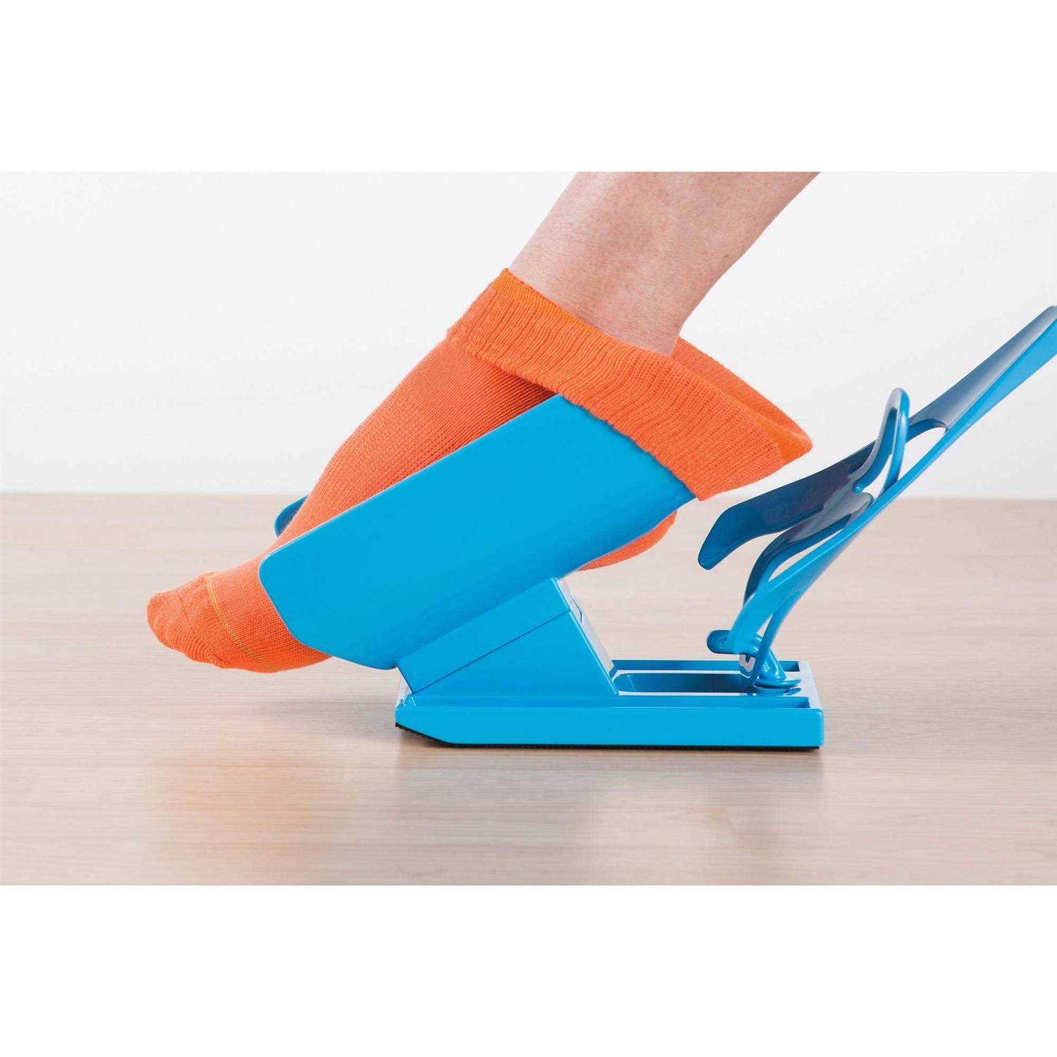 - EASY TO USE; Place your sock on the cradle, lower the cradle to the floor and slide your foot in.