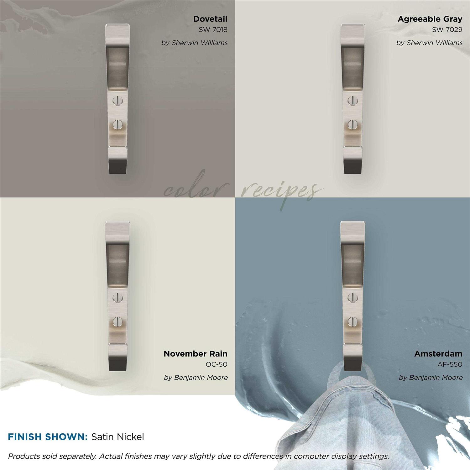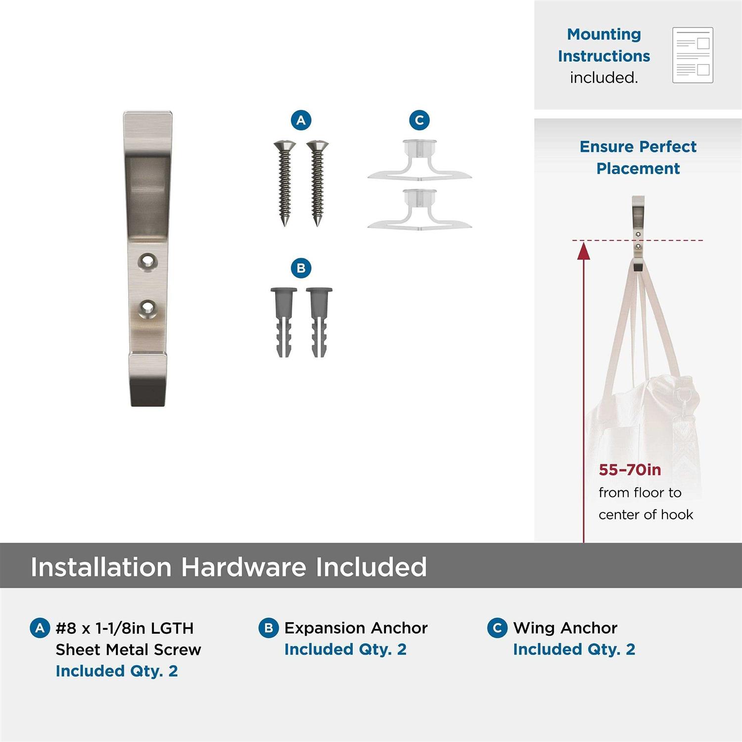 Easy to install wall hooks for your pantry, closet, entryway, bathroom, office, kitchen, or anywhere you need to hang your hat. Use hooks to hang towels, robes, or clothes in bathrooms with limited wall space. Style without sacrifice – consider mounting multiple hooks in a row for a more modern approach to the standard hook rack. End chaos with creativity and refresh your home with small details that blend style and function. Hooks should be placed 55-70 inches from floor to center of the hook Note – each hook can hold 35lbs when installed into a stud Installation hardware is included with every Amerock product, along with a template and simple mounting instructions Founded in 1928, Amerock’s award-winning home solutions including decorative and functional cabinet hardware, bath accessories, decorative hooks and wall plates have built the company’s reputation for chic design accessories that inspire homeowners to express their personal style.
