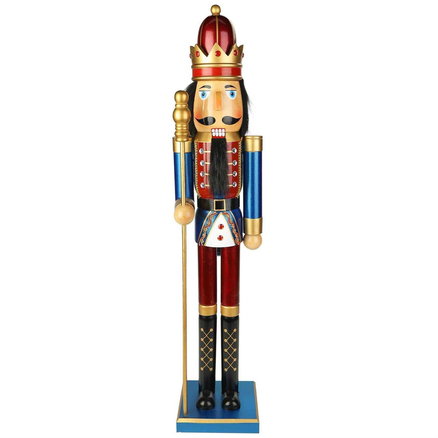 AMOR PRESENT Nutcracker Figure 36 2.9Ft Dark Blue&Red Wooden Nutcracker Soldier Statue for Christmas Decoration,Holiday Decor