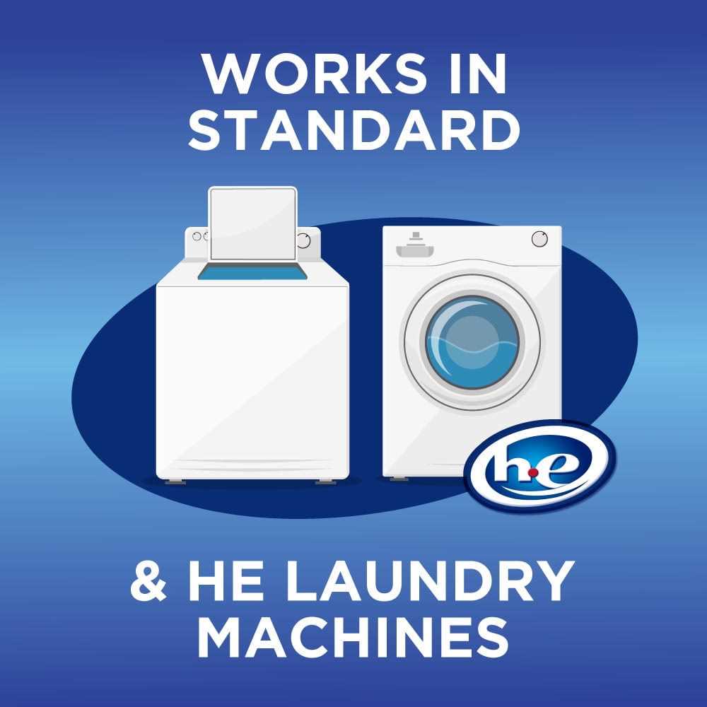 • Clean-rinsing, low-sudsing formula won’t block HE machine sensors, making it an effective choice for both standard and HE washers