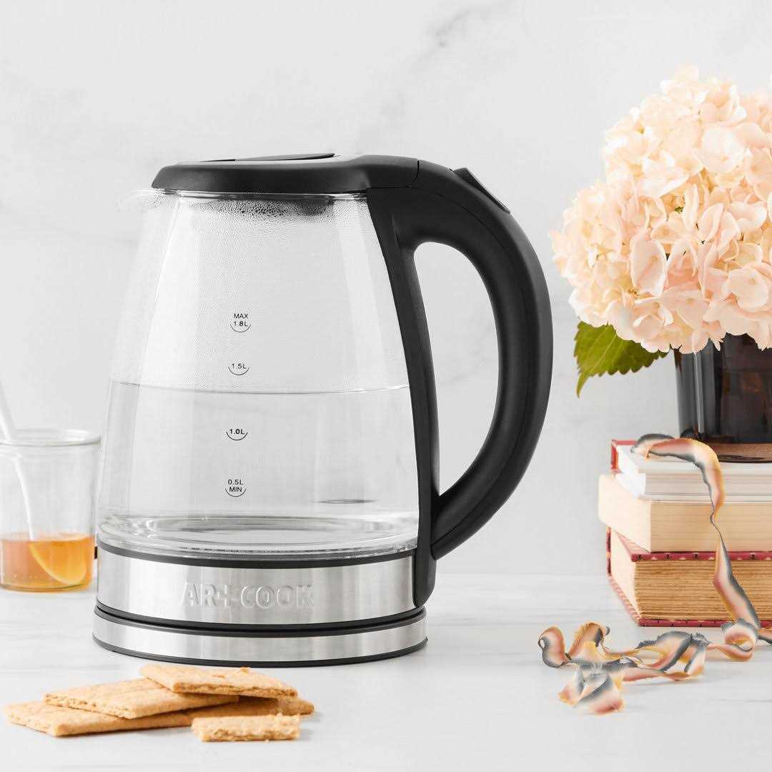 Art & Cook 1.8L Illuminated 1000 Watt Electric Glass Kettle – Black
