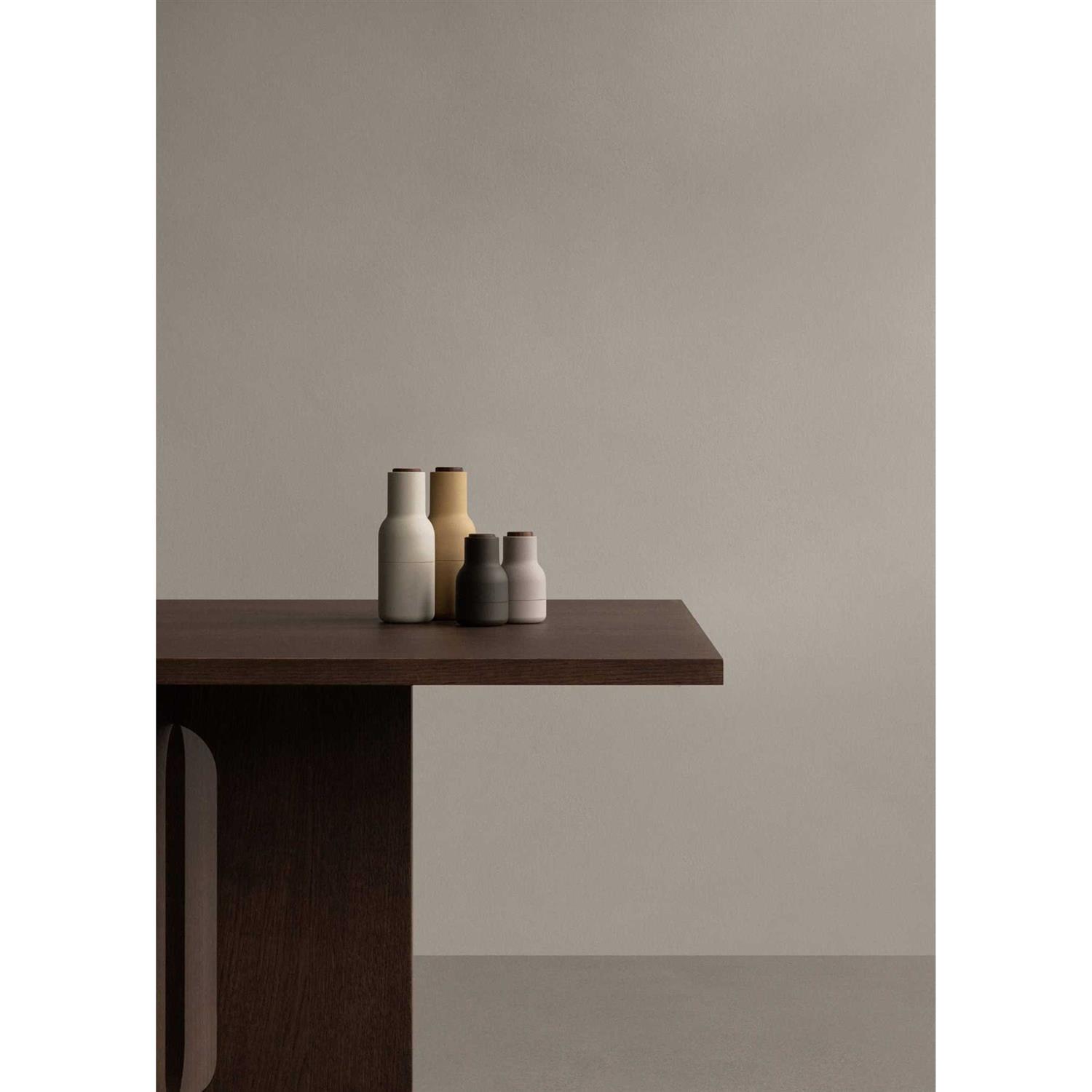 The Bottle Grinders appear as water bottles, but on closer inspection reveal their true purpose. The salt and pepper mills are shaped for ease of use and with a look that fits effortlessly into any kitchen or dining space. Now available in a smaller size perfect for the table, the Bottle Grinders, Small are shaped to fit comfortably in the hand and make light work of grinding salt and spices thanks to a powerful ceramic mill. While the larger Bottle Grinders are ideal for cooking, the new, scaled down version of the popular salt and pepper mills is perfect for the table. Discreet in both size and colour, the two-piece set complements any setting with its perfect balance of form and function. Designed for Audo Copenhagen by Norm Architects, the Bottle Grinders are powerful salt and pepper mills disguised as bottles.