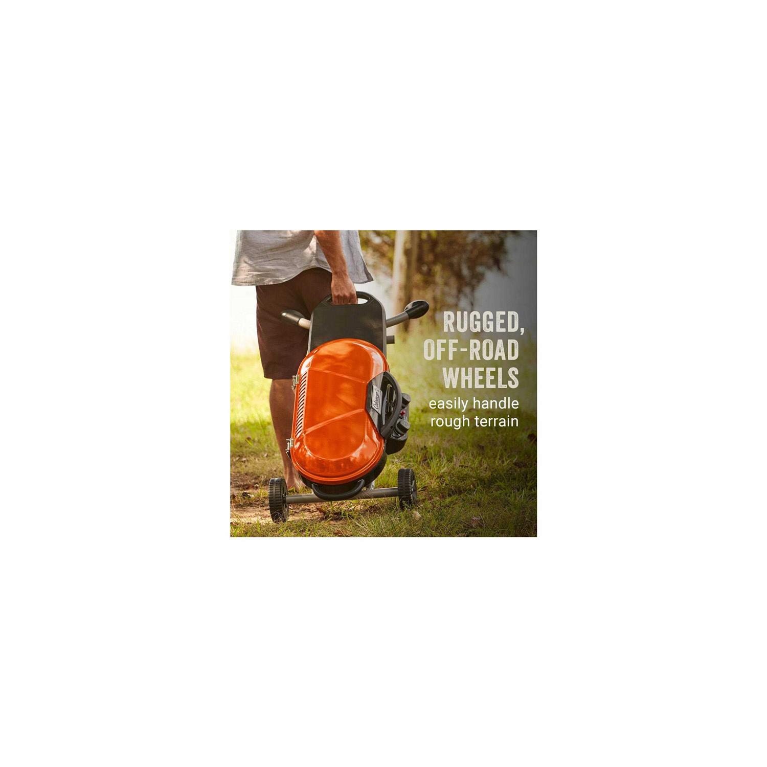Rule the campground, park, or the parking lot when you fire up your Coleman RoadTrip X-cursion Propane Camping Stove. This portable grill with collapsible steel scissor legs and a low-profile design make moving it around as easy as flipping a burger, while the rugged, off-road wheels handle almost any terrain. Once you’re at your grill site, 285 sq. in. of porcelain-coated, cast iron grills are waiting for anything you can throw at them. Just hit the Instastart push-button ignition and dial in your heat with the two independently adjustable burners. Turn up the heat with 20,000 BTUs of grilling power that delivers it consistently across the grill surface thanks to the Even-Temp burners. When it’s time to head home, the DripTrap removable water pan catches all the grease for easy cleaning before you go. Fold this grill up and it will store out of the way until you head out to your next summer cookout. Compact and portable for camping, tailgating, cookouts, and beach parties Independent, adjustable double burners deliver 20,000 BTUs of grilling power Swaptop interchangeable cooktops for more meal options (griddle, full size griddle and stove grates sold separately) Even-Temp burners radiate heat equally across the grill DripTrap water pan grease catch with NullaFlare technology reduces flareups and is easy to clean Instastart ignition for push-button, matchless lighting Steel legs with oversized wheels fold for compact storage and easy transport Upgrade your living room with the selection of this Coleman Roadtrip XCursion Propane Grill in Orange C.