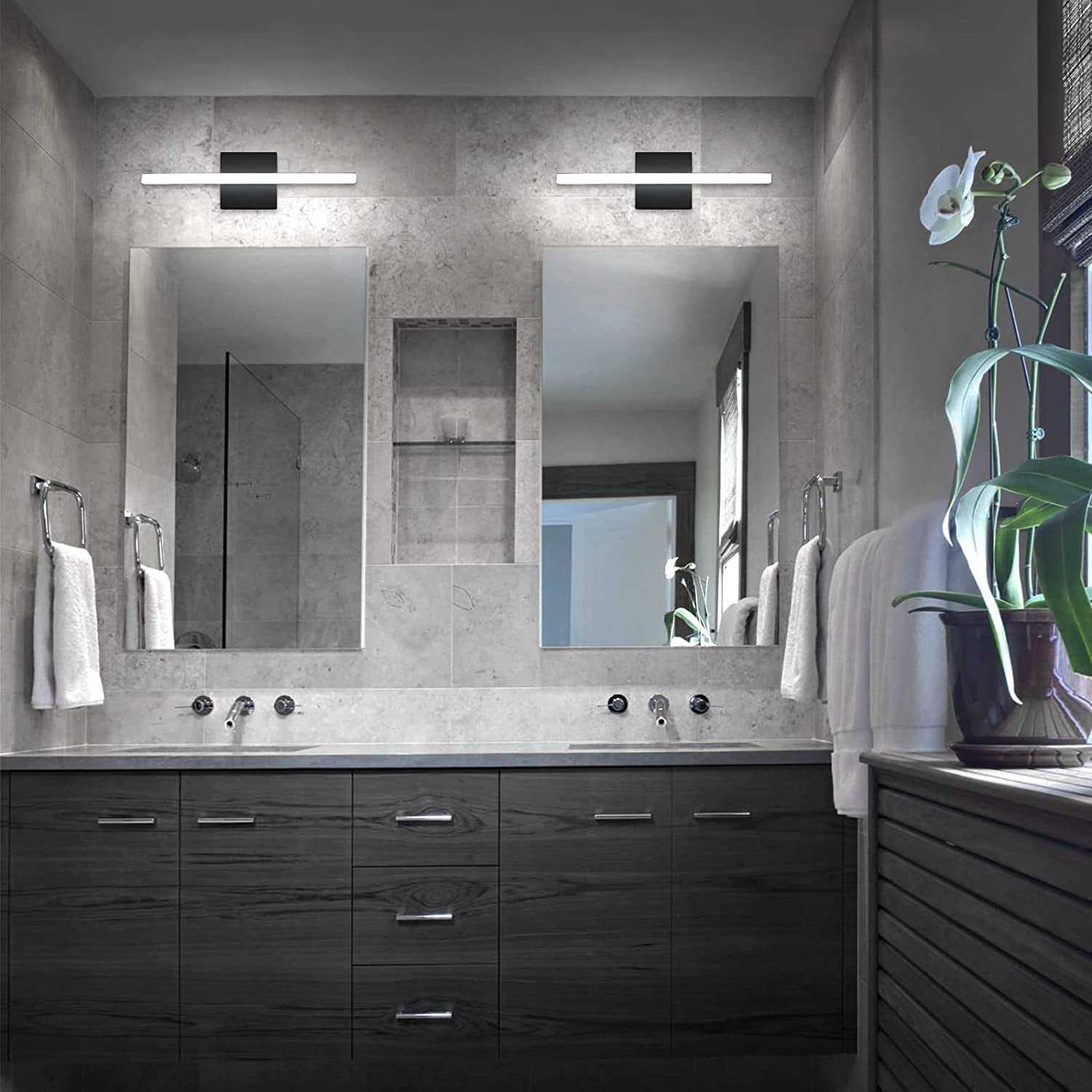 Combuh LED Bathroom Vanity Light Dimmable IP44 Mirror Lighting Fixture 16inch Wall Lamp Indoor 9W Modern Cool White 6000K Black