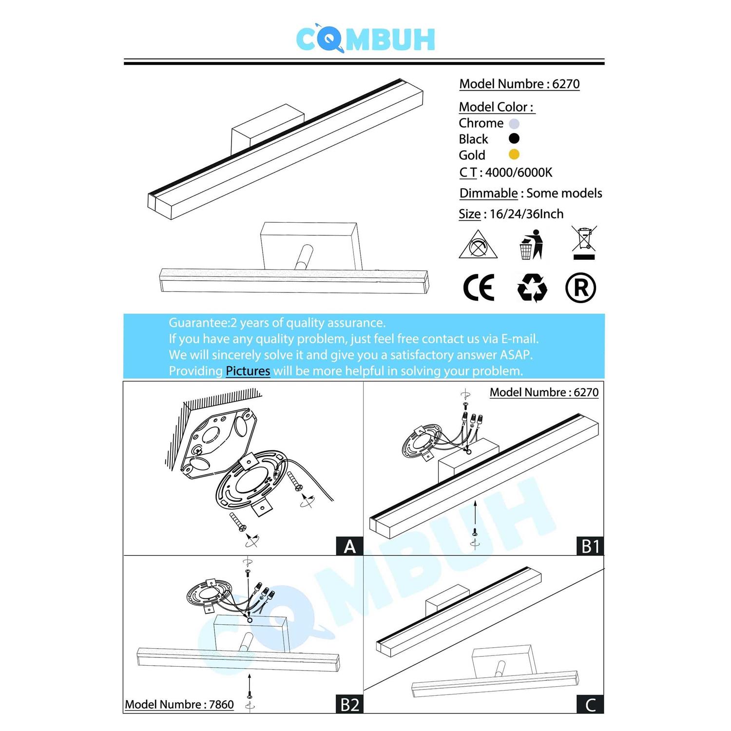 DIMMABLE: This lighting fixture can be easily dimmed by using the wall switch, providing you with the flexibility to adjust the brightness according to your preference. Please note that it does not have a separate switch or cord for pull. MODERN BATHROOM LAMP: With a power of 9W and a size of 16 inches, this modern bathroom lamp offers 850LM of brightness. The natural white color temperature of 6000K creates a softer light color, creating a comfortable and inviting atmosphere in your bathroom. PREMIUM LED INTEGRATED: The bath lighting fixture is equipped with premium LED 2835SMD, which emit brilliant light while providing eye protection and avoiding any undesirable flash. Additionally, the fixture has built-in short circuit protection, making it energy-saving and environmentally friendly. IP44 ANTI-FOG DESIGN: The LED mirror front light is designed with an IP44 rating, which means it is resistant to fog and water vapor in the bathroom. This feature ensures that the light remains clear and functional even in a moist environment. However, please note that the mirror light serves as an auxiliary light and may not provide enough illumination to fully light up the entire room. HIGH-QUALITY CONSTRUCTION: The bathroom wall light over the mirror is built to last, featuring a stainless steel base and an acrylic lampshade. This high-quality construction ensures durability and prevents rust from occurring, allowing the fixture to maintain its sleek appearance over time. WIDE APPLICATION: This mirror light is not only perfect for bathroom lighting but also ideal for makeup application. It is suitable for various locations including toilets, bathrooms, bedrooms, mirror cabinets, and other similar scenarios, offering versatility and convenience in its use. Specification Product Details Type: Modern and elegant mirror lamp Dimmable: YES Color:Cool White Color temperature:6000K Materials: acrylic,Stainless Steel Voltage: AC110V Wattage:9W Lumen: 850LM Product length:16inch/40CM Energy saving> With a power of 9W, this LED replaces a 40W incandescent bulb, saving 85% in electricity costs. Modern design Ideal for installation in living room, dining room, bedroom, bathroom, hallway, study, chest of drawers, mirrored wardrobe, hallway. Long lifespan With an average lifespan of up to 50,000 hours Lamps are more than just sources of light. They are the feel-good component for your home, the extra something that helps you set the mood for the special moments in life.