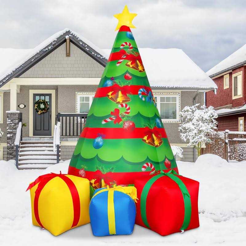 Comin 7 ft Christmas Inflatables Tree Outdoor Decorations Blow Up Yard Gift Box with Built-in LEDs for Indoor Party Garden Lawn Decor