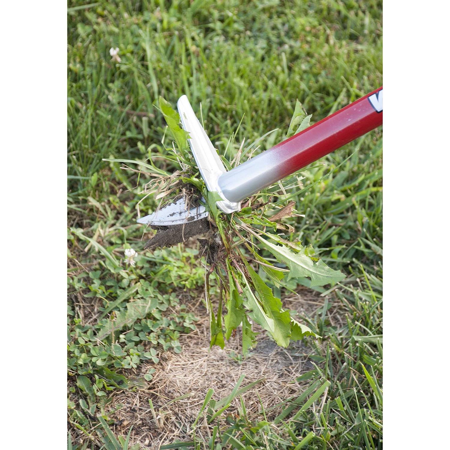 Serrated, hooked dual tines for step-n-twist and pull-n-pop action to easily remove weeds. Strong and durable construction, allowing you to work faster with less effort. Eco-friendly, chemical-free weeding. 31″ handle length. Comfort grip handles.