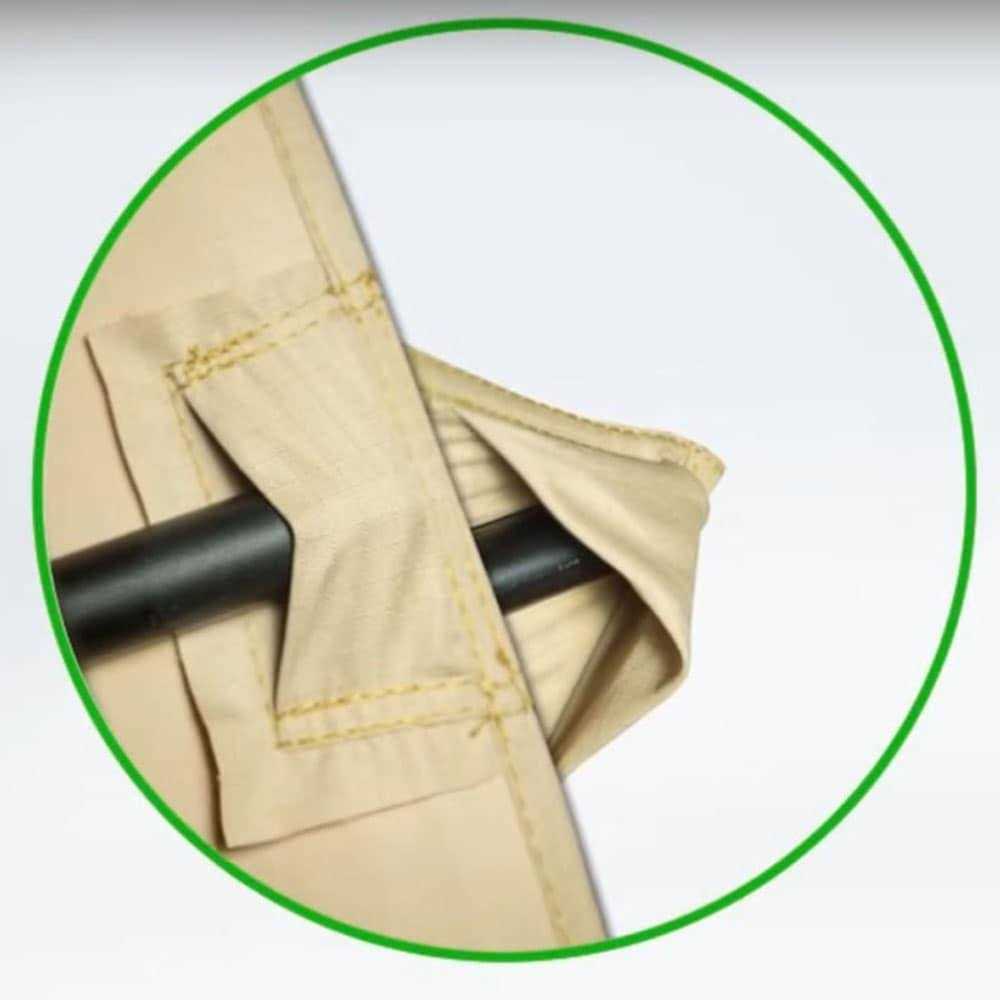 - Fabric: polyester, UV treated, water-resistant, CPAI-84 fire retardant, UPF 50+