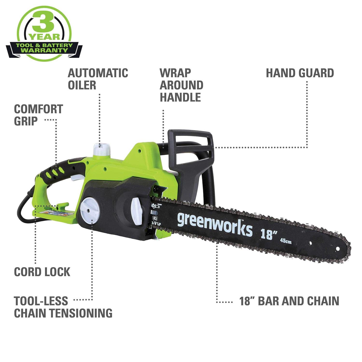 Greenworks 14.5 Amp 18 inch Corded Electric Chainsaw 20332