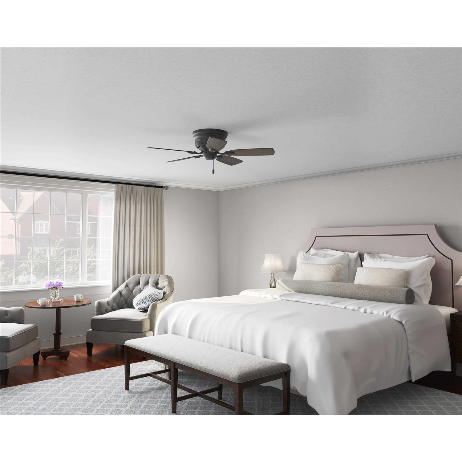 The Hunter Low Profile IV traditional ceiling fan is designed with housing specially crafted to fit flush to the ceiling making it ideal for use in your small rooms with low ceilings. Available in multiple finishes, this low-profile ceiling fan without light is powered by a 3-speed WhisperWind motor to deliver ultra-powerful and whisper-quiet performance. It makes the perfect complement for your casual living rooms and bedrooms.