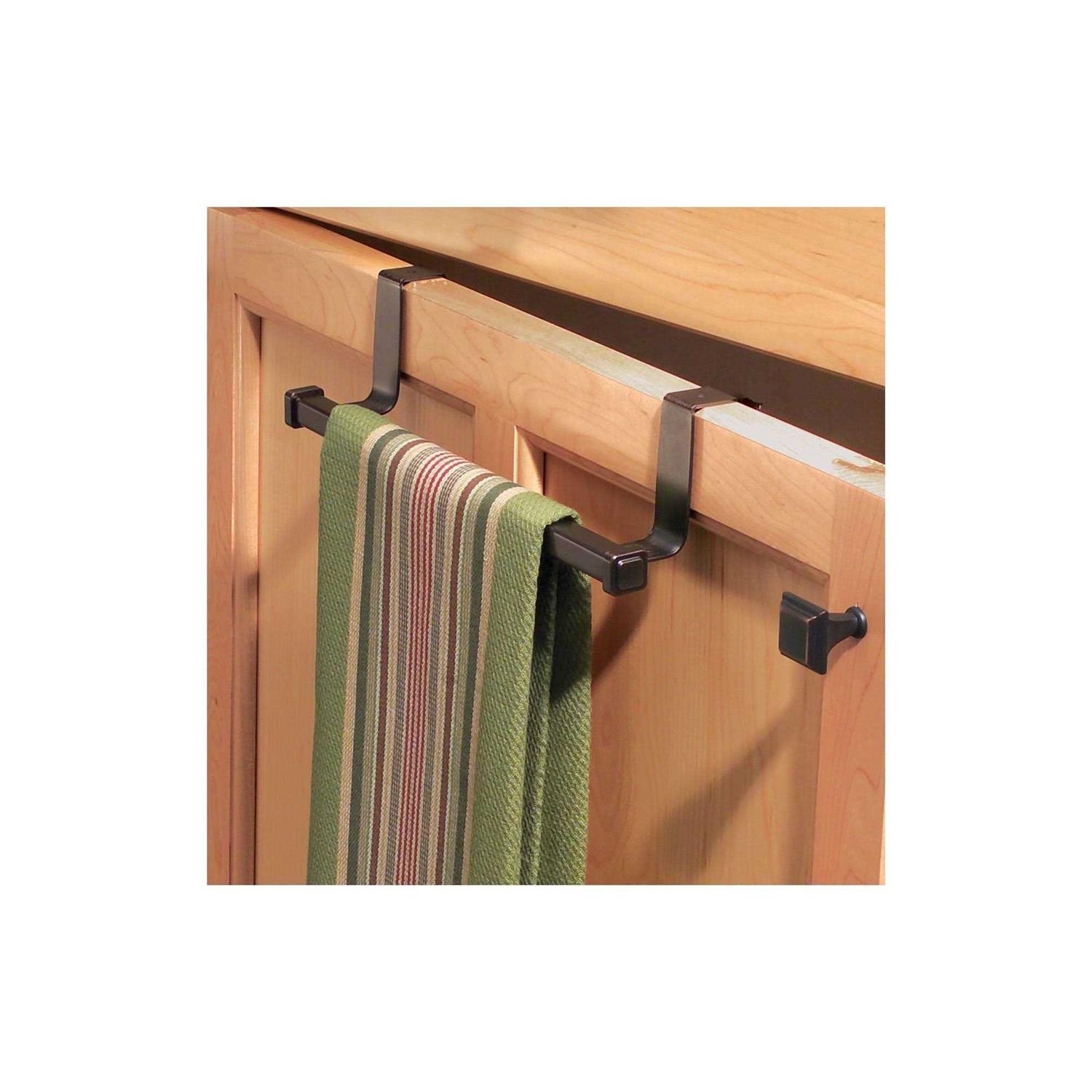 Interdesign provides an innovative storage solution with this bronze finish 9” towel bar. Hang inside or outside your cabinets. No hardwarerequired. Towel bar features non-absorbent foam backing that protectscabinets. Measures 9.7” x 2.4” x 5.6”.
