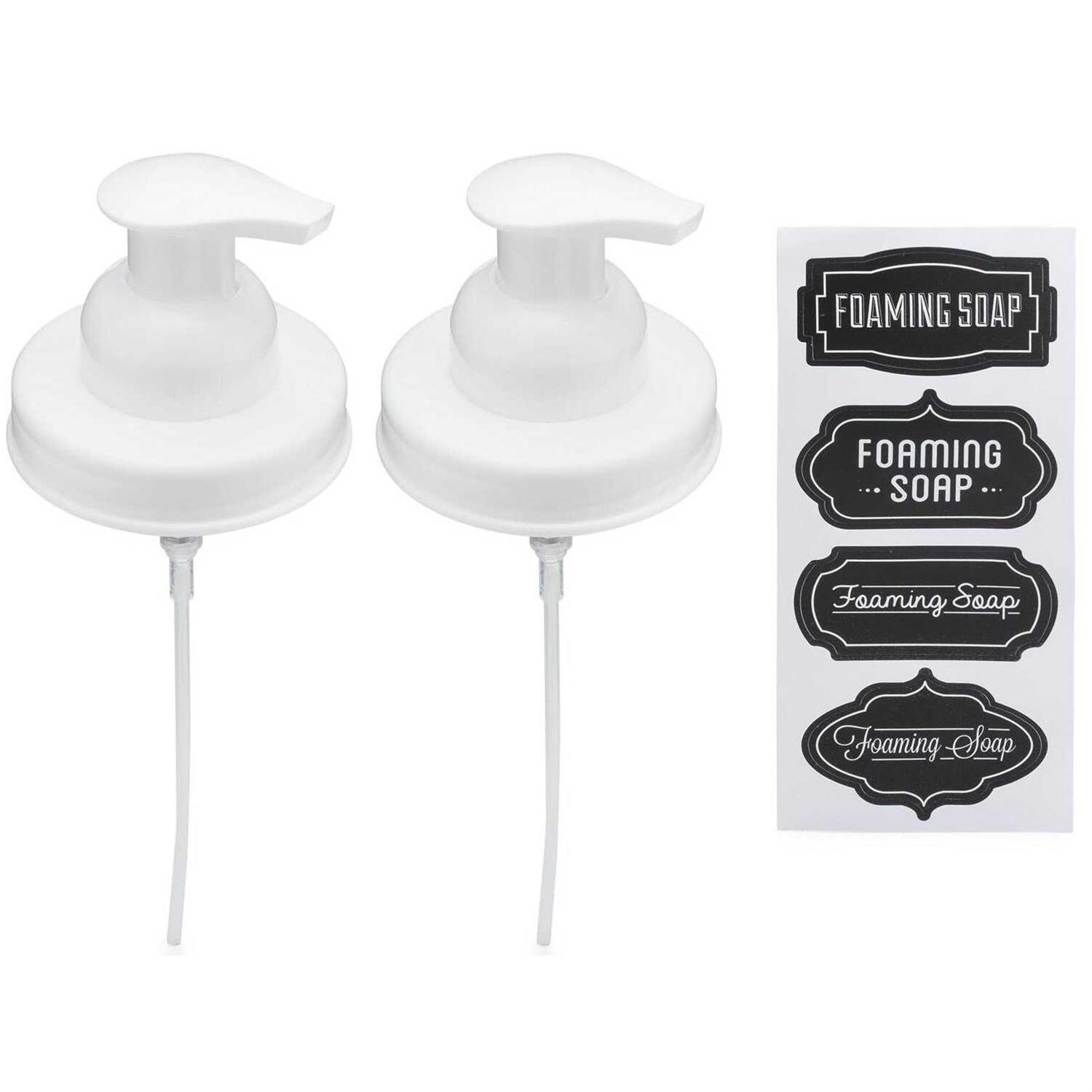 Jarmazing Products Mason Jar Foaming Soap Dispenser Lids – Includes Waterproof Stickers – Black – 2 Pack