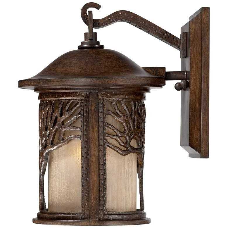 John Timberland Mission Outdoor Wall Light Fixture Bronze Tree Motif 12 1/4 Amber Glass Lantern for Exterior House Porch Patio