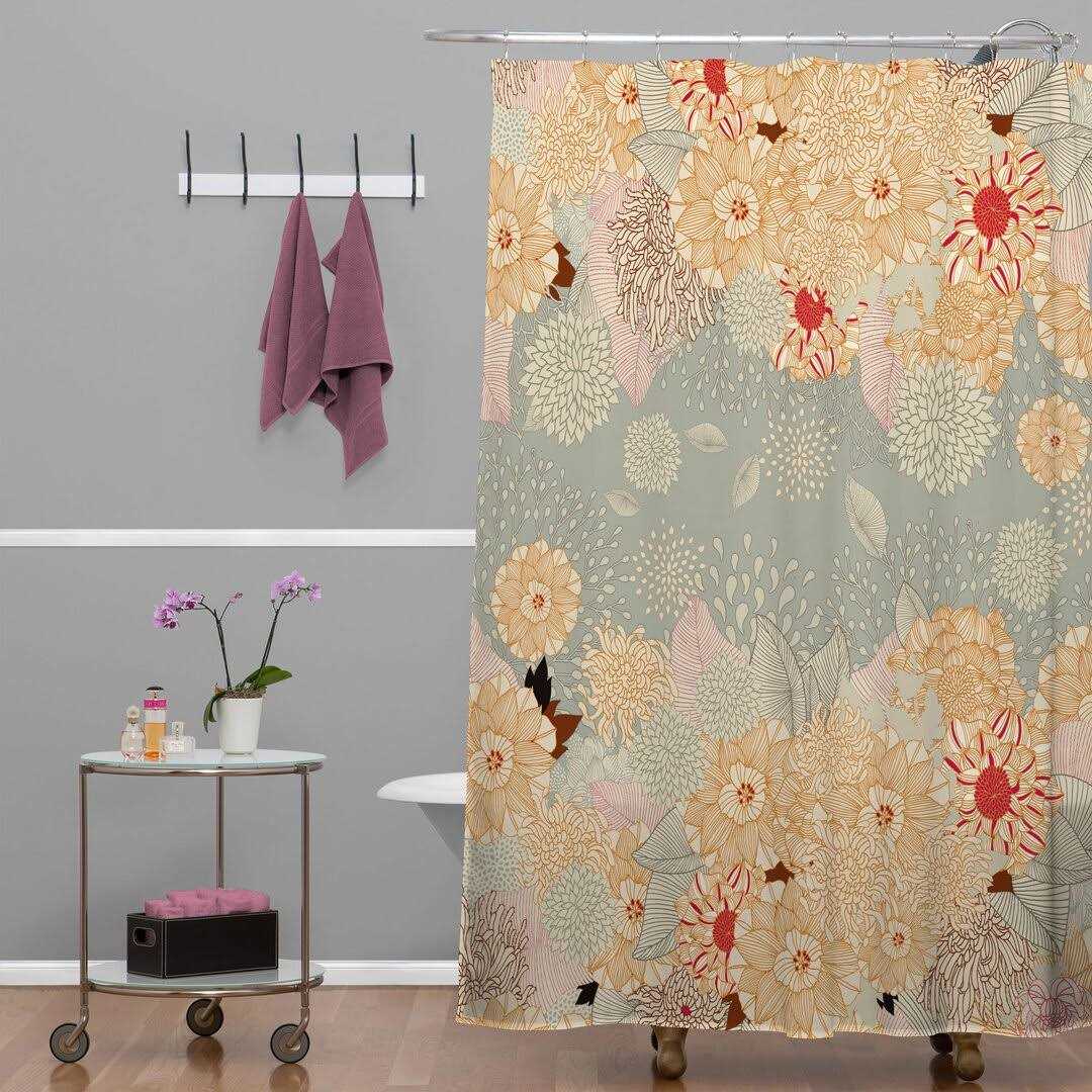 Bedeck the decor of your bathroom with bold patterns and bring home this Polyester Shower Curtain. Fashioned with retro and contemporary accents, the shower curtain will add a splash of color to any bathroom it is placed in. An artistic and inventive design, the shower curtain will decorate your bathroom with its creative and fashionable strokes.Built entirely out of polyester, the shower curtain is the definition of abstract art with a retro twist. The top and base are made out of a curtain with hook holes, which ensures the lasting stay of the shower curtain in your home. With large flower motifs spread throughout the design, the shower curtain will add a sliver of traditionality to the interiors of any bathroom. Sporting stitched reinforced hook holes and reinforced top hem, the shower curtain is functional without compromising on style. A multicolor palette design with a floral-theme, the shower curtain will add a splash of panache to your bathroom. A water repellent and a topstitched design, the shower curtain celebrates versatility with vivacity. Made in the USA, this Polyester Shower Curtains is the perfect companion for your home. A mold and fade resistant design, the shower curtain is machine washable and eco-friendly.
