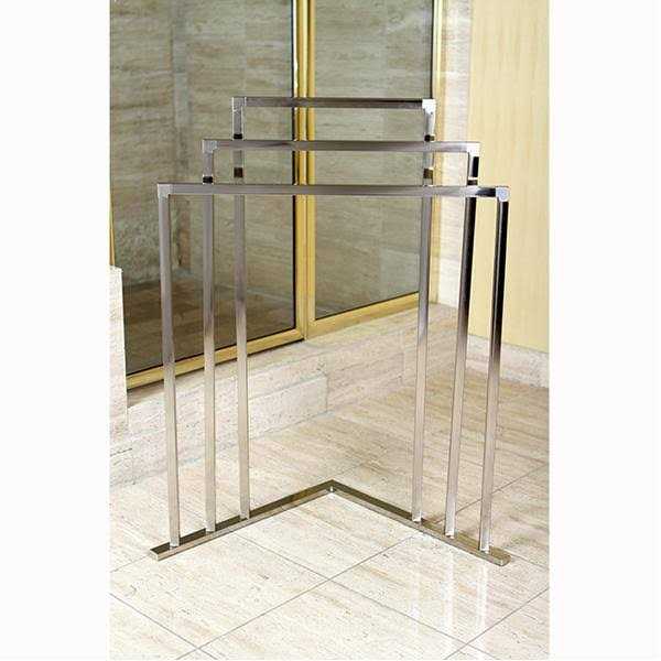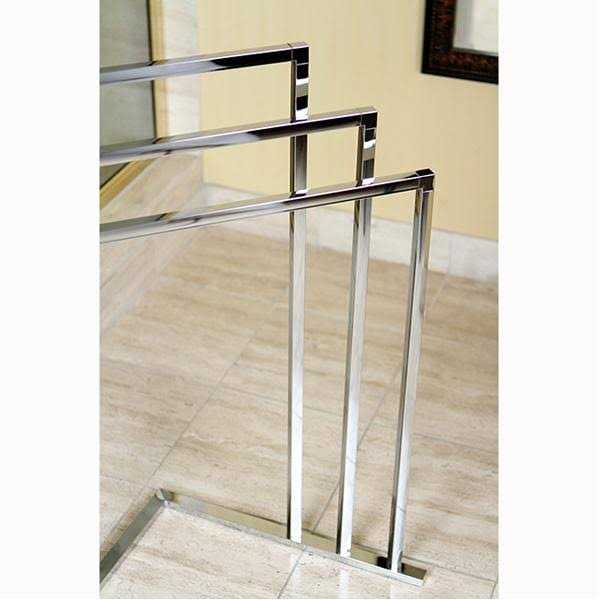 The corner towel rack is perfect for maximizing the space in your bathroom. With its l-shaped base, you can place the towel rack in the corner for easy access. The 3-tiered design provides 3 separate tiers that can be used for your bath and hand towels. With an all steel construction, durability and reliability are never an issue. Solid steel construction pedestal towel rack quick and easy installation rust resistant corrosion and tarnish-resistant color finishes offer durability and years of beauty overall dimension: l26-3/8in x w13-15/16in x h33in available in chrome, oil rubbed bronze and satin nickel.