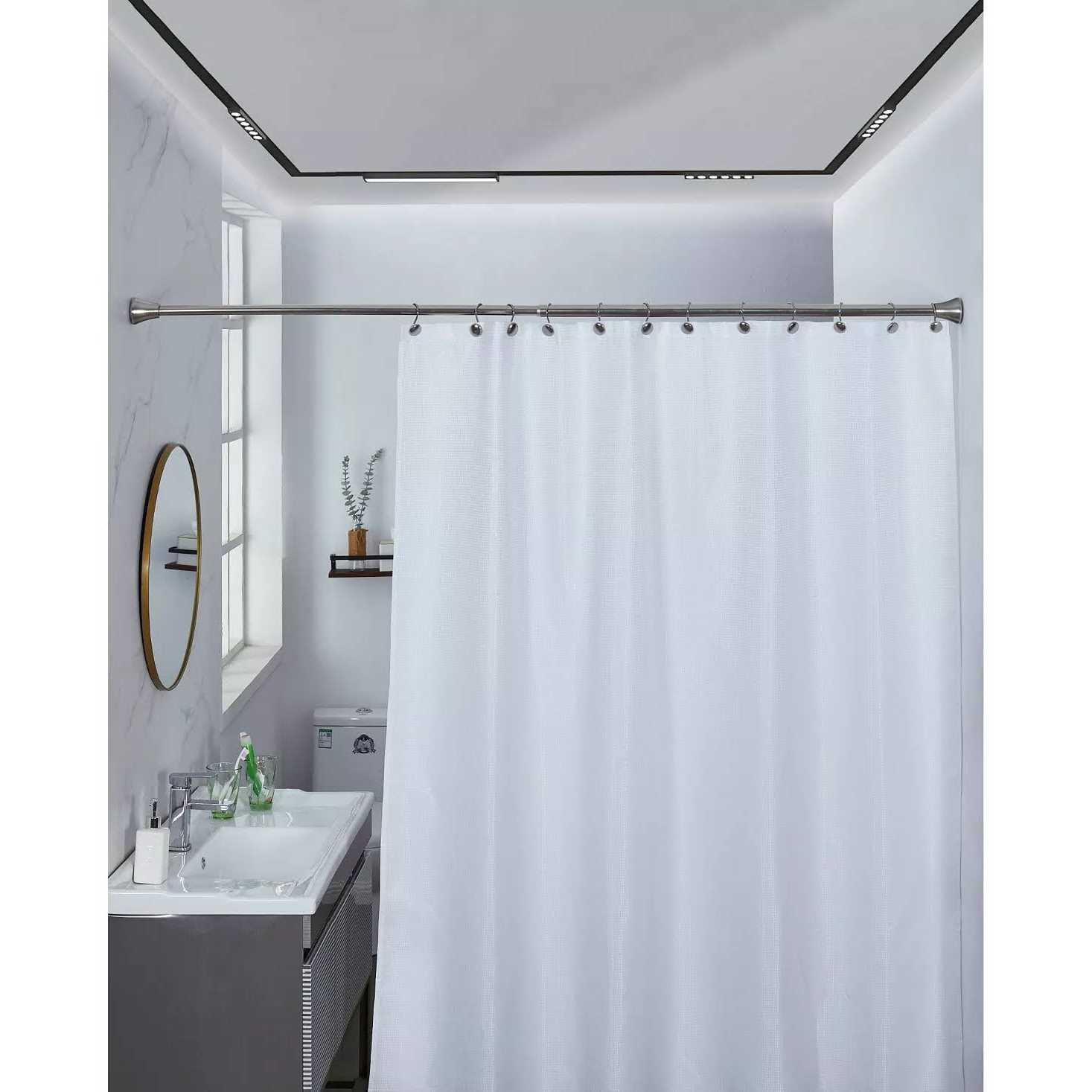 - Adjustable shower curtain rod set with 12 premium flat button hooks
