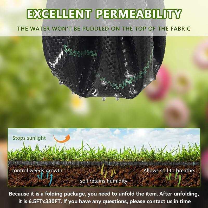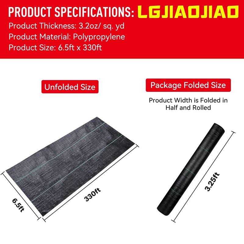 LGJIAOJIAO 6.5FTx330FT Weed Barrier Landscape Fabric Heavy Duty, Weed Block Gardening Ground Cover Mat, Weed Control Garden Cloth, Woven Geotextile