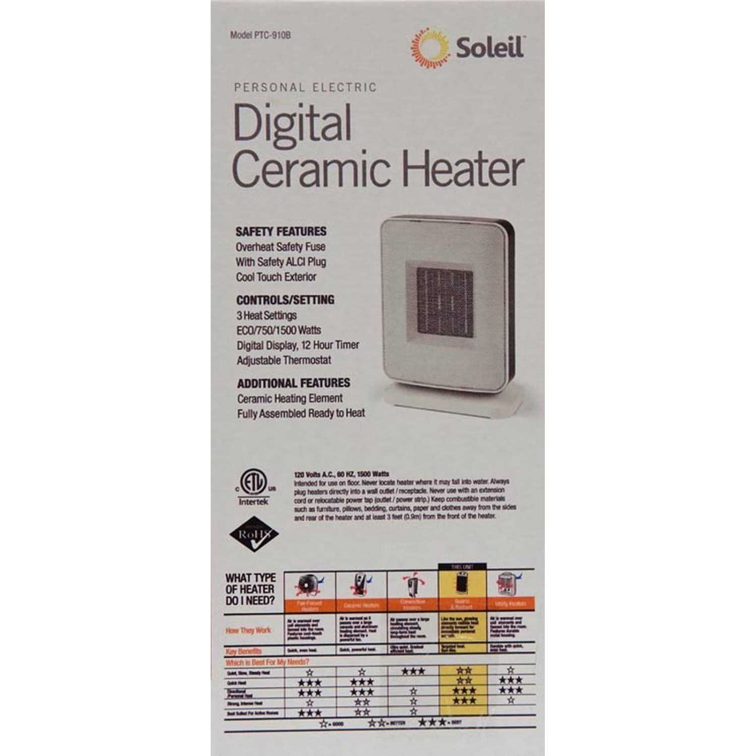 Be the first to review “Soleil Digital Electric Portable Ceramic Space Heater PTC-910b”