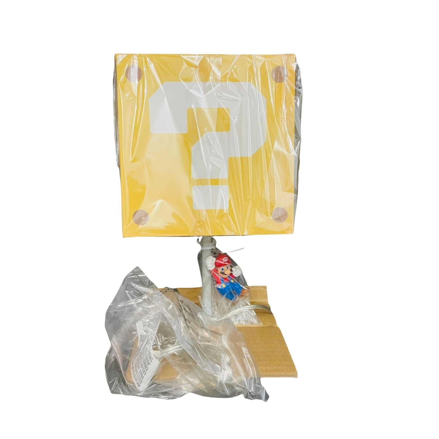 This Super Mario question block electric lamp will make a great addition to a night stand or in any room of the house or office. It has a square question mark lamp shade green round base and a Mario chain pull to turn on or off. This instantly recognizable design makes a great gift for lovers of the Super Mario franchise as well as fans of retro gaming in general. Measures 7′ x 7 inch x 14 inch.