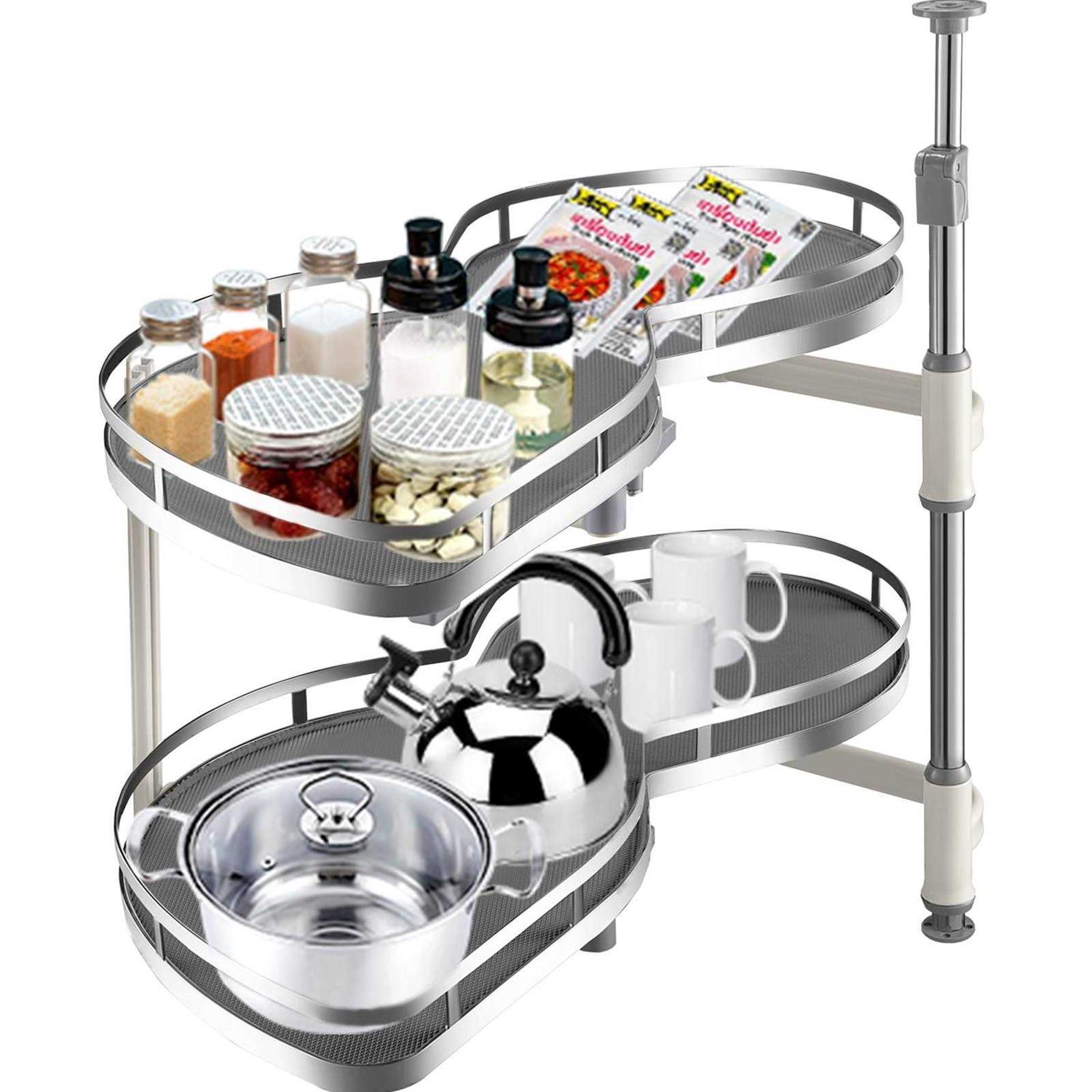 Are you still fretting about the lack of storage space in the kitchen? Using VEVOR blind corner shelf can make full use of the space in your kitchen. It’s made of carbon steel material for enhancing durability and sturdiness, each shelf can hold up to 33 lbs objects. The corner cabinet can easily install on the left or right blind corner cabinet, two baskets can hold all kinds of utensils, pans, pots, spice, etc. It is widely used in household and commercial places. Color: Silver.