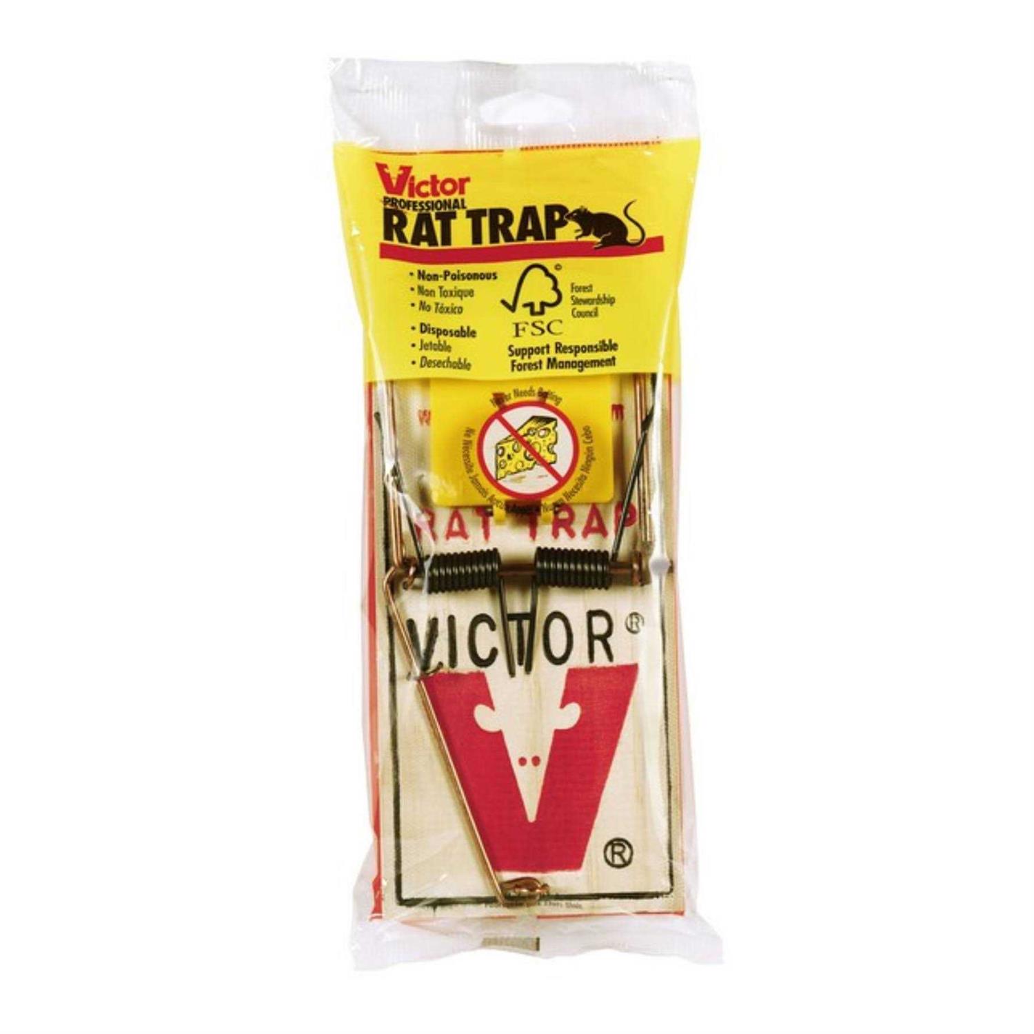 Simplify your rodent control routine with the Victor Easy Set rat trap. Using the original wooden snap trap design with an improved larger trip pedal to ensure higher catch rates, this trap will help you to effectively eliminate rodents around your household or business. Two settings, firm and sensitive, allow you to control the sensitivity of the trap. In addition, these traps require no chemicals or poisons. For best results, these rat traps should be placed where rodents travel, such as along walls at 2 to 3 ft intervals. The Easy Set rat trap enhances the classic snap trap design by adding a large plastic trigger plate to ensure higher catch rates. The expanded size means it can be easily activated both by rodent interest in food and through accidental contact as rats scamper across the floor. Once a rodent triggers the pedal, the Easy Set rat trap immediately springs closed to eliminate the pest on contact. After a catch, simply throw away the entire trap for quick and clean removal or dispose of the rat and reuse the trap. Not only will the Victor Easy Set rat trap help you eliminate your rodent problem, you can feel satisfied in knowing that it is sourced from environmentally responsible materials. It is constructed of Forest Stewardship Council certified wood.