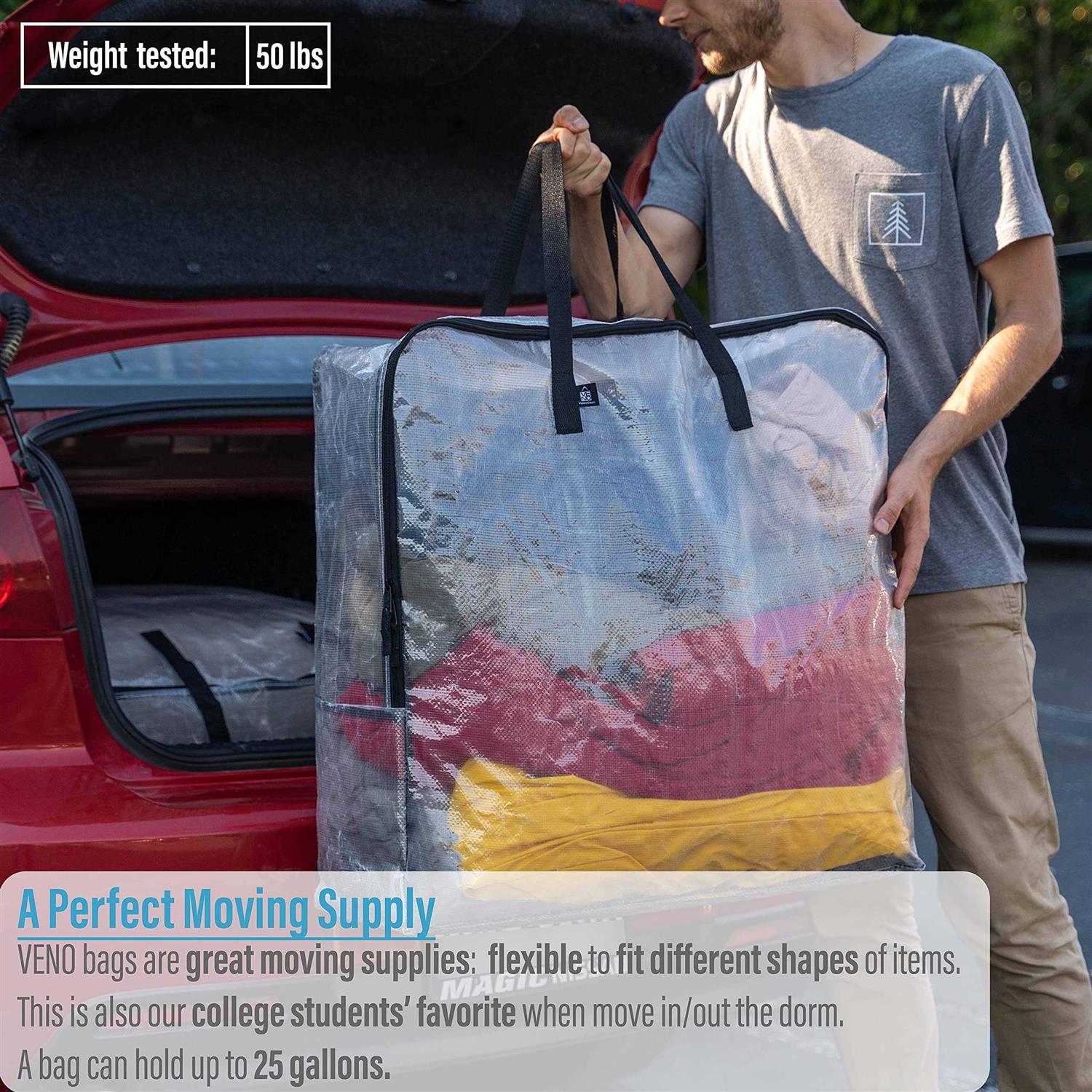 VENO 4 Pack Over-sized Clear Organizer Storage Bag W/Strong Handles and Zippers for College